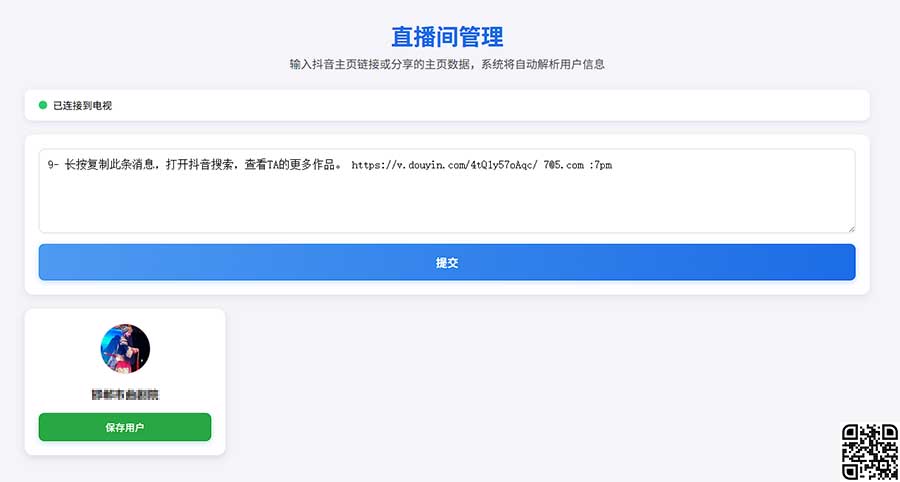 简介:一款专为 Android TV 设计的直播观看软件,允许您通过任何设备的浏览器远程控制、分析和保存抖音用户数据,并直接在电视大屏幕上观看直播。