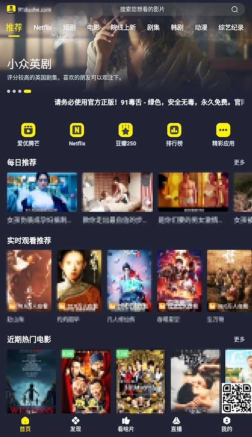 91毒舌电影 分类:手机影用 大小:23.5MB 热度:85 点评:0 发布: 2025-04-09 语言:简体中文 ①下载 ②下载 APP截图 应用介绍 名称:91毒舌电影内容:奈飞、短剧、电影、院线、剧集、韩剧、动漫、综艺、纪录下载试用:① 91毒舌电影_3.3.9.30309.apk① 91毒舌电影_3.3.4_NoAD.apk下载提取码:见页面底部↓ 相关应用 追番达人 特狗 23影视 快映视频 YIYI影视 若惜追剧 番茄影视 星空影视 王者TV 壹影视