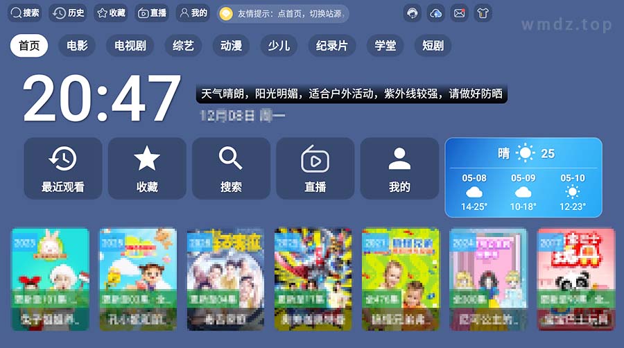 萤火虫影视U9 分类:TV影用 大小:59MB 热度:42 点评:0 发布: 2025-12-08 语言:简体中文 ①下载 ②下载 APP截图 应用介绍 名称:萤火虫影视U9内容:电影、电视剧、综艺、动漫、少儿、纪录片、学堂、短剧说明:内置接口资源备注:会员壳;无法确定是否长久免费下载试用:① 萤火虫影视U9_2.6.3.apk下载提取码见页面底部↓ 相关应用 萤火虫影视U9 嘉禾影视 老鬼音影 可可影视 完美TV 茶杯狐TV OKPlayer Pro 流星雨影院 橘汁TV 怡家影视