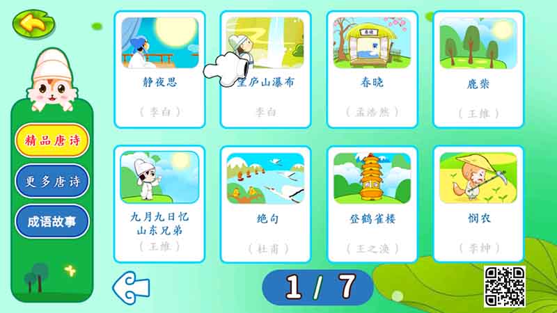宝宝唐诗三百首 分类:教育类影用 大小:30MB 热度:71 点评:0 发布: 2025-01-01 语言:简体中文 ①下载 ②下载 APP截图 应用介绍 名称:宝宝唐诗三百首简介:精品唐诗、更多唐诗、成语故事下载试用:①宝宝唐诗三百首_1.81.2233tv.apk②宝宝唐诗三百首_1.81.2233tv.apk 下载提取码:见页面底部↓ 相关应用 总统学院 学古诗TV 可可拼音发音点读 汉语拼音学习宝 多邻国 哆哆识字 儿歌点点 淘知学堂TV 教育·动漫 教育学习TV