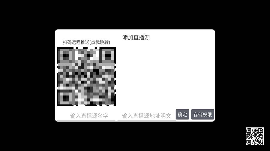 2.在添加直播源页面中,有两种方式可以添加直播源:手动添加和扫码添加。如果您已经得到了直播源地址或二维码,可以选择手动添加或扫码添加。