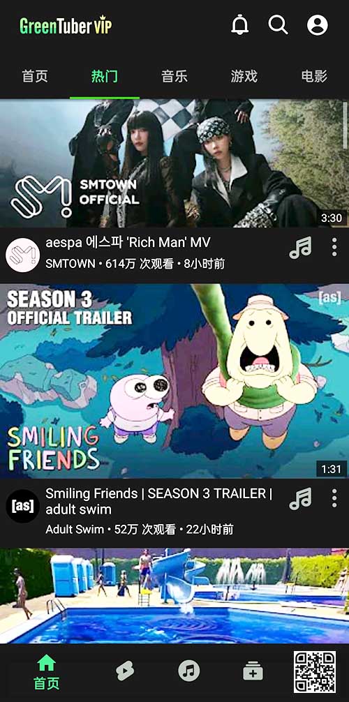 GreenTuber 分类:全球类影用 大小:15MB 热度:223 点评:0 发布: 2025-09-05 语言:简体中文 ①下载 ②下载 APP截图 应用介绍 名称:GreenTuber简介:GreenTuber是一个提供了许多实用功能的第三方YouTube客户端,尤其适合那些想要无广告观看YouTube视频的用户。备注:需要全球网络下载试用:①GreenTuber_0.1.7.5.apk下载提取码见页面底部↓ 相关应用 myTV-SUPER CheerVisionTV BrowseHere浏览器 Google Play Store GreenTuber Zero TV HouseTV X64 全球TV Polo TV AI Browser